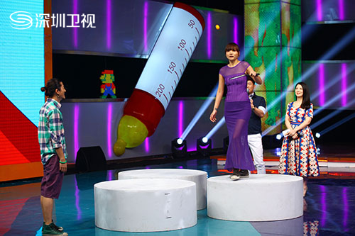 春晓不论是答题,还是互动,都是一副“护着彭坦,有事让我来”的姿态。李湘调侃春晓:“结婚以前,总是看见彭坦背着你,抱着你像公主,怎么感觉现在你就跟彭坦他妈似的呢?”春晓无奈地告诉李湘“对啊,我就跟他妈妈一样,他看到玩具就撒娇要买,带他就跟带小孩一样,他心智也就十五六岁。”而彭坦则将其小孩子的本性展现得淋漓尽致,在跟春晓说话时嗲声嗲气,甚至想把节目现场的玩具背景拿走,让人哭笑不得。春晓在分析题目时用彭坦比例子,不巧他因此“躺枪”获低能儿称号,彭坦不满地向春晓撒娇:“你怎么老拿我比例子啊?”十足地小奶腔,引爆全场笑点。