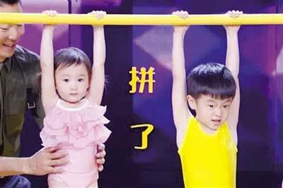 奥莉表情淡定呆萌,杨阳洋则十分努力,表情“狰狞”。